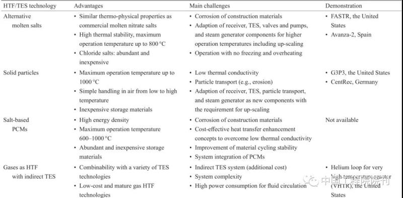 他們廣泛研究了4種有發(fā)展前景的技術(shù)路線,即固體顆粒、熔鹽、氣體和液態(tài)金屬技術(shù)路線。本文總結(jié)了上述技術(shù)的最新研發(fā)進展和面臨的主要挑戰(zhàn),此外,還對這些技術(shù)的優(yōu)缺點進行了比較和評論。