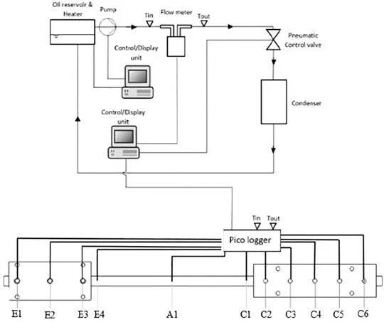 圖1 實驗裝置示意圖(前綴“ E”,“ A”和“ C”分別表示位于蒸發(fā)段,絕熱段和冷凝段的熱電偶)