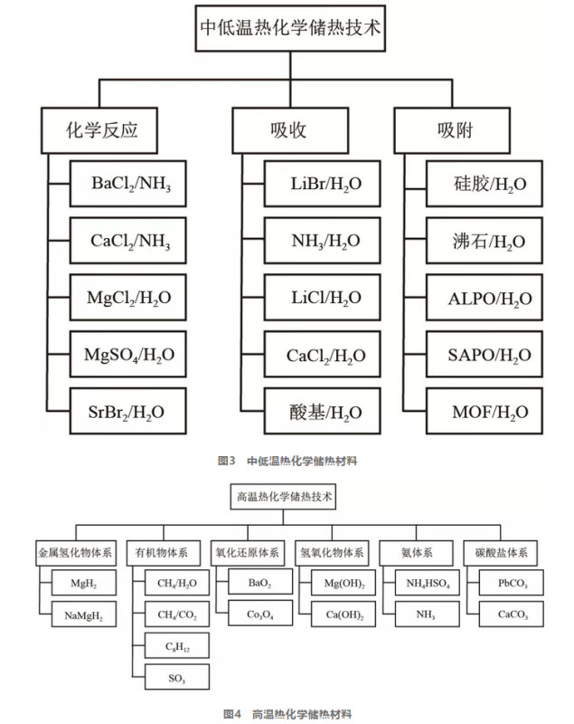 根據(jù)反應(yīng)特點,熱化學(xué)儲熱技術(shù)可分為化學(xué)反應(yīng)、吸附和吸收3種儲熱技術(shù)。其中,化學(xué)反應(yīng)儲熱技術(shù)是基于不同化學(xué)物質(zhì)的可逆反應(yīng);吸附儲熱技術(shù)是基于被吸附物向吸附劑表面的累積或聚集;吸收儲熱技術(shù)是基于被吸收物在吸收劑內(nèi)的溶解或滲透。