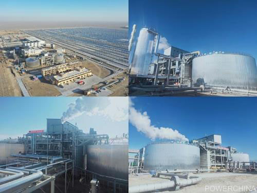 該項目由80個線性菲涅爾太陽能集熱回路,1套儲熱系統(tǒng)(二元熔鹽),1套蒸汽發(fā)生系統(tǒng),1套高溫高壓、一次中間再熱汽輪發(fā)電機(jī)系統(tǒng)以及其他輔助設(shè)施組成,配置15小時儲熱,可實(shí)現(xiàn)24小時連續(xù)發(fā)電,年發(fā)電量約2.14億千瓦時。項目由敦煌大成聚光熱電有限公司作為建設(shè)單位牽頭建設(shè)、中國電建集團(tuán)中南勘測設(shè)計研究院有限公司承擔(dān)EPC總承包工作,甘肅光明電力工程咨詢監(jiān)理有限責(zé)任公司負(fù)責(zé)工程監(jiān)理,主要參建單位包含了動力區(qū)建安的山東電力建設(shè)第一工程有限公司、儲熱罐施工的上海藍(lán)濱石化設(shè)備有限責(zé)任公司、集熱島施工的蘭州大成科技股份有限公司以及常規(guī)島設(shè)計的西北電力設(shè)計院有限公司。