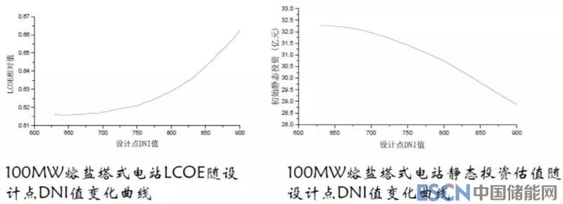 結(jié)論:儲能小時為12h時,具有最優(yōu)的LCOE值,因此,確定參比100MW熔鹽塔式電站方案的設(shè)計點DNI為780W/m2,儲能小時為12h。