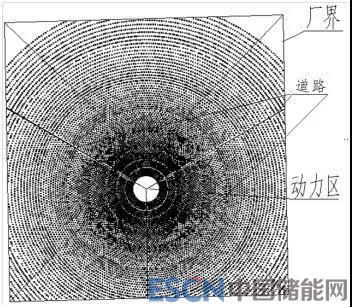 對于塔式技術(shù)方案,前文已列舉了在現(xiàn)有市場塔式各設(shè)備成本的基礎(chǔ)上優(yōu)化到的最優(yōu)塔式配置,此時定日鏡場面積為133.9萬m2,儲能小時為13h,儲熱容量為2962MWht,此時根據(jù)參考DNI,塔式電站的上網(wǎng)電量為約為3.53億kWh/a,靜態(tài)投資約為32.24億元,其定日鏡場布置如下圖所示。