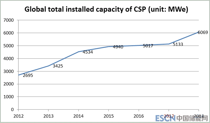圖:CSPPLAZA統(tǒng)計的全球已建成光熱裝機量(2012-2018)
