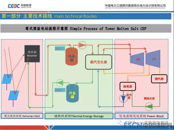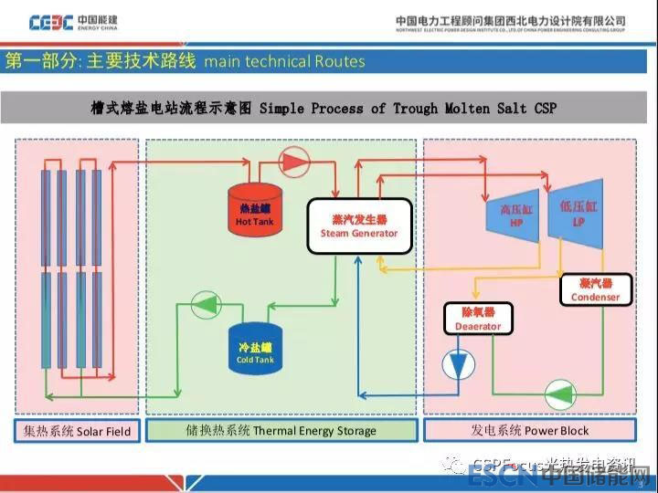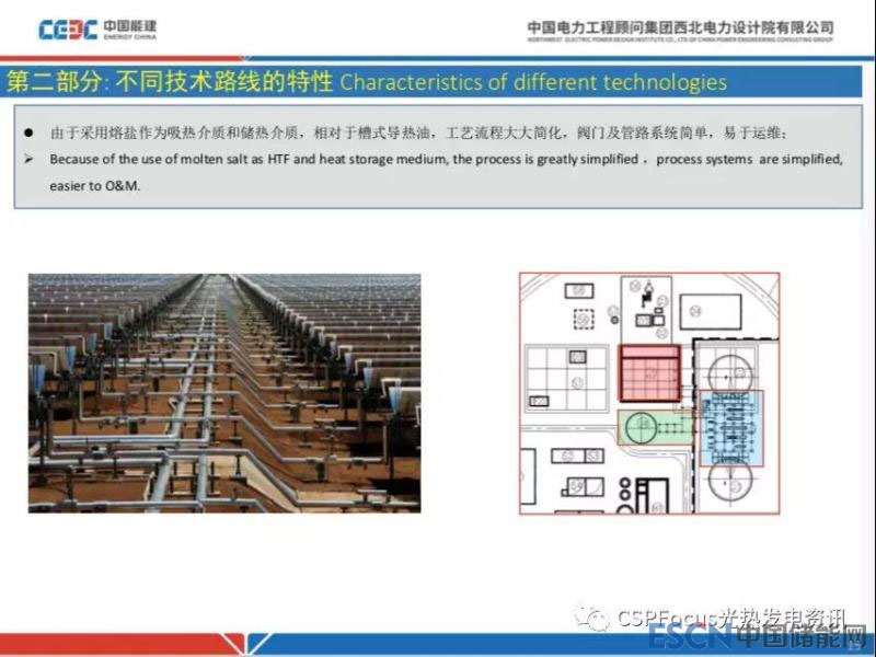 同時槽式和塔式比較,塔式采用熔鹽作為吸熱儲熱介質(zhì),和槽式導(dǎo)熱油不太一樣,因此相對于槽式導(dǎo)熱油電站工藝流程簡化,閥門管路非常簡單,易運維。