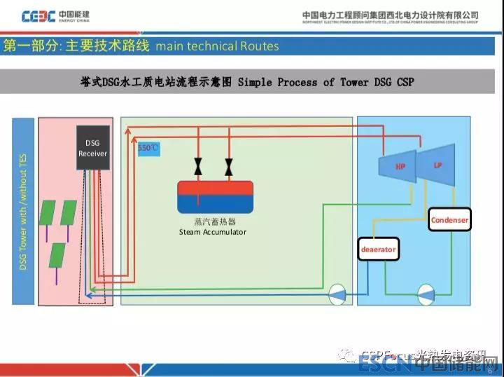 塔式熔鹽電站和之前提到的槽式熔鹽電站從電能輸出特性來講比較優(yōu)秀,比較靈活適應(yīng)電網(wǎng)側(cè)需求,而且與槽式導(dǎo)熱油電站相比,節(jié)省導(dǎo)熱油工藝,整個系統(tǒng)比緊湊。因此具有很強的優(yōu)勢。