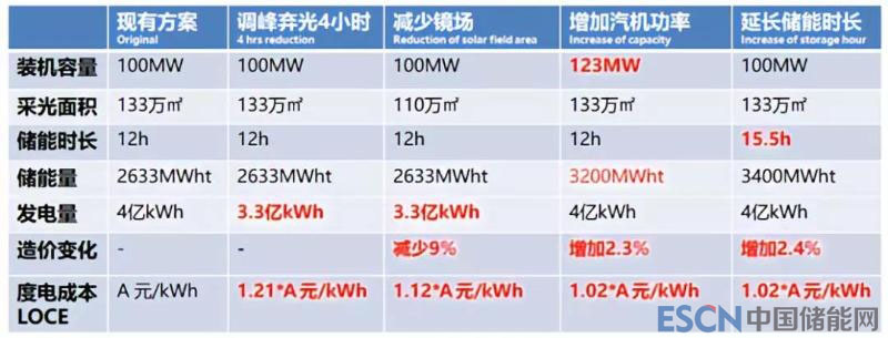 (2)系統(tǒng)優(yōu)化:為適應(yīng)于調(diào)峰需求,系統(tǒng)設(shè)計需調(diào)整:同等采光面積下(同等土地面積),增加儲能時長,或:同等采光面積下,增加汽輪機(jī)額定功率。