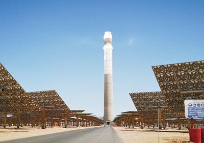 在熱映的電影《紅海行動》中,太陽能電廠的場景拍攝就選址摩洛哥努奧光熱電站,這是該太陽能電廠場區(qū)的三期項目,占地約750公頃,裝機(jī)容量150兆瓦,為目前世界上單機(jī)容量最大的塔式光熱發(fā)電項目,也是“一帶一路”代表工程。吸熱塔總高243米,是目前世界上最高的吸熱塔。