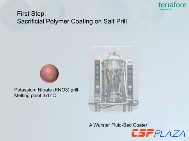 接著加熱膠囊,這時(shí)熔鹽表面附著的聚合物將再次變成氣體并通過氣孔逸出,同時(shí)也使膠囊內(nèi)部留下了一些孔隙,為鹽在加熱和冷卻時(shí)的膨脹和收縮創(chuàng)造空間條件。最后再將一種特殊的涂層附著在膠囊表面以密封氣孔并使其牢固?!驹敿?xì)過程見下列組圖】