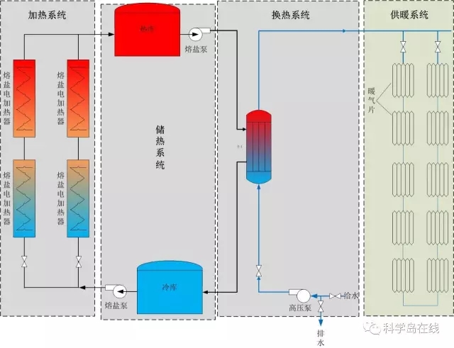 圖片一:高溫熔鹽儲熱系統(tǒng),利用熔鹽作為蓄熱材料將谷電及間歇性電能以熱能形式儲存起來,以滿足工業(yè)用熱需求。