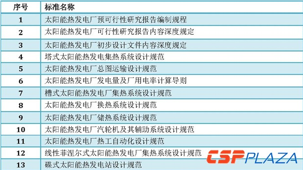 據(jù)不完全統(tǒng)計(jì),中國已經(jīng)發(fā)布或正在編制的光熱發(fā)電行業(yè)標(biāo)準(zhǔn)如下: