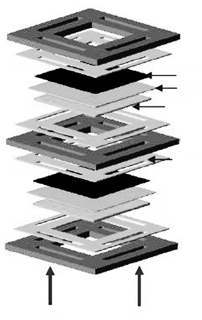 為了產(chǎn)生足夠的電量帶動某一電器,科學家們經(jīng)常將許多固體氧化電池串聯(lián)在一起。每個電池的構(gòu)造都相同:一端為空氣,一端為燃料??諝庵械难鯕庋趸剂袭a(chǎn)生電子。在這些相互聯(lián)系的固體氧化電池中,最重要的是將獨個的電池隔離起來,這樣不同電池里的空氣及燃料就不會泄露或者混合。而如果出現(xiàn)泄露或者混合則有可能導(dǎo)致電池效能下降甚至內(nèi)燃。要實現(xiàn)不同固體氧化電池的完全隔離需要先進的密封技術(shù)。