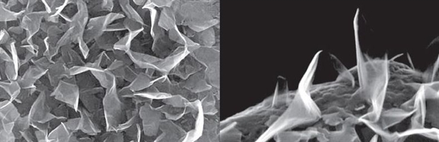 由美國(guó)JME公司(位于俄亥俄州謝克海茨市的一家電容公司)總裁約翰·米勒所帶領(lǐng)的一個(gè)研究團(tuán)隊(duì),對(duì)超級(jí)電容的結(jié)構(gòu)和電極進(jìn)行了新的設(shè)計(jì),使其充電的時(shí)間縮短到了200微秒(人類每次眨眼的時(shí)間約為0.2秒—0.4秒,即20萬(wàn)微秒—40萬(wàn)微秒)。新的電極由美國(guó)維吉尼亞州威廉瑪麗學(xué)院的羅恩·奧特洛設(shè)計(jì)。整體由一組與底座垂直的石墨烯基片構(gòu)成:石墨烯基片只有一個(gè)原子厚,由等離子體化學(xué)沉積而成;其基座由10納米厚的石墨制成。米勒形象地稱其為“一組600納米高的土豆片并排站在一起”。實(shí)驗(yàn)顯示,與原先的多孔化活性炭結(jié)構(gòu)制成的超級(jí)電容相比,新電容效率更高,能在更短的時(shí)間內(nèi)完成充電。