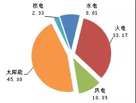 1-10月,全國僅新增太陽能裝機(jī)比重增加。其中,新增水電占新增總裝機(jī)的8.95%,較上年同期下降1.93個(gè)百分點(diǎn);新增火電裝機(jī)比重達(dá)33.3%,較上年同期下降5.2個(gè)百分點(diǎn);新增核電裝機(jī)比重2.18%,較上年同期下降6.9個(gè)百分點(diǎn);新增風(fēng)電占10.7%,較上年同期下降1.85個(gè)百分點(diǎn);新增太陽能發(fā)電裝機(jī)占44.9%,較上年同期增加15.8個(gè)百分點(diǎn)。