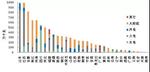 2017年1-10月,我國新增裝機(jī)主要集中在山東、江蘇、安徽、浙江、河南、四川、河北、福建、新疆等省份(新增裝機(jī)均在360萬千瓦以上),占新增裝機(jī)總量的67.5%;