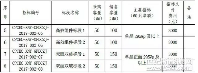 據(jù)悉,11月16日,國家電力投資集團(tuán)2017年第六十一批700MW組件集中采購(儲備容量為2700MW)開標(biāo),據(jù)悉,共有28家組件企業(yè)參與了此次招標(biāo)。根據(jù)招標(biāo)文件,國家電投此次招標(biāo)共包括12個(gè)標(biāo)段,其中單、多晶各4個(gè)標(biāo)段,還包括2個(gè)高效組件標(biāo)段以及2個(gè)雙面雙玻標(biāo)段(見下圖)。