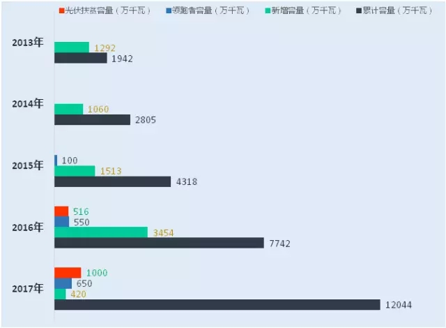 圖1. 光伏裝機(jī)容量表(其中2017年容量為1-9月份新增)