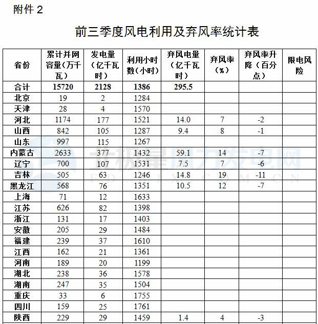 2.前三季度風(fēng)電利用及棄風(fēng)率統(tǒng)計(jì)表