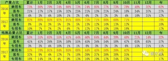 從產(chǎn)量結(jié)構(gòu)的變化看,17年10月的客車(chē)占比12%,較16年全年的27%下降較大。但10月的客車(chē)用電池占比達(dá)到35%,相對(duì)16年10月的47%下降不大。17年乘用車(chē)總體看是占產(chǎn)量需求的78%和電池需求的51%,仍是引領(lǐng)消費(fèi)增長(zhǎng)的核心動(dòng)力。9-10月專(zhuān)用車(chē)產(chǎn)量體現(xiàn)的恢復(fù)較好。