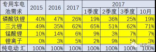 專(zhuān)用車(chē)的三元化趨勢(shì)很明顯。1-10月的三元電池的裝車(chē)量達(dá)到62%的占比,而16年的占比是35%.10月達(dá)到71%,三元提升的趨勢(shì)相對(duì)是合理的狀態(tài)。