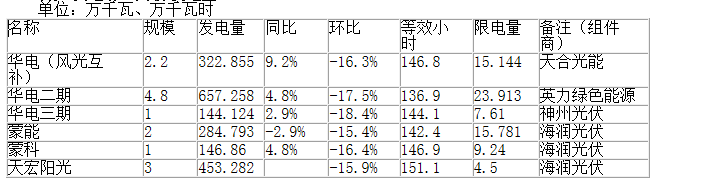 各光伏電場(chǎng)10月份發(fā)電量