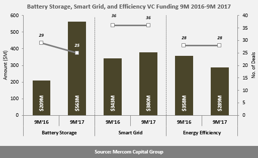 中國(guó)儲(chǔ)能網(wǎng)訊:Mercom資本發(fā)布第三季度報(bào)告稱(chēng),2017年1-9月,全球智能電網(wǎng)、電池儲(chǔ)能和能效企業(yè)獲得風(fēng)投資金12億美元,同比增長(zhǎng)32%。