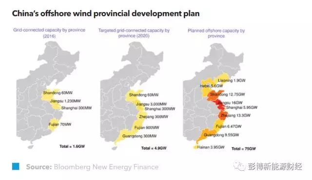 市場規(guī)模:2016 年,中國海上風(fēng)電累計裝機(jī)容量為1.6GW,為世界第三大海上風(fēng)電市場,排在英國和德國之后。按照現(xiàn)有的海上風(fēng)電項目規(guī)劃,中國將超額完成原定5GW的2020年海上風(fēng)電累計并網(wǎng)目標(biāo)。其中,江蘇省還制定了3GW的2020 年省級目標(biāo)。