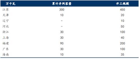 近幾年,國內(nèi)開始大力發(fā)展海上風(fēng)電,我國東部沿海的經(jīng)濟(jì)發(fā)展和電網(wǎng)特點與歐洲類似,適于大規(guī)模發(fā)展海上風(fēng)電,國家已經(jīng)推出了江蘇及山東個沿海兩個千萬千瓦級風(fēng)電基地的建設(shè)規(guī)劃,并出臺了《海上風(fēng)電開發(fā)建設(shè)管理暫時辦法》。 2010 年我國第一個海上風(fēng)電示范項目——上海東海大橋 102MW 海上風(fēng)電場的 34 臺機組已經(jīng)實現(xiàn)并網(wǎng)發(fā)電,標(biāo)志著我國海上風(fēng)電的發(fā)展開始啟動。到2020 年底,風(fēng)電累計并網(wǎng)裝機容量確保達(dá)到 2.1 億千瓦以上,其中海上風(fēng)電并網(wǎng)裝機容量達(dá)到 500 萬千瓦以上;風(fēng)電年發(fā)電量確保達(dá)到 4200 億千瓦時,約占全國總發(fā)電量的 6%?!笆濉逼陂g我國將重點推動江蘇、浙江、福建、廣東等省的海上風(fēng)電建設(shè),到 2020年四省海上風(fēng)電開工建設(shè)規(guī)模均達(dá)到百萬千瓦以上,將積極推動天津、河北、上海、海南等?。ㄊ校┑暮I巷L(fēng)電建設(shè),將探索性推進(jìn)遼寧、山東、廣西等?。▍^(qū))的海上風(fēng)電項目。2020 年,全國海上風(fēng)電開工建設(shè)規(guī)模達(dá)到 1000 萬千瓦,累計并網(wǎng)容量達(dá)到 500 萬千瓦以上。 我們認(rèn)為,未來隨著海上風(fēng)電的建設(shè)成本逐漸下降,海上風(fēng)電有望迎來快速增長。