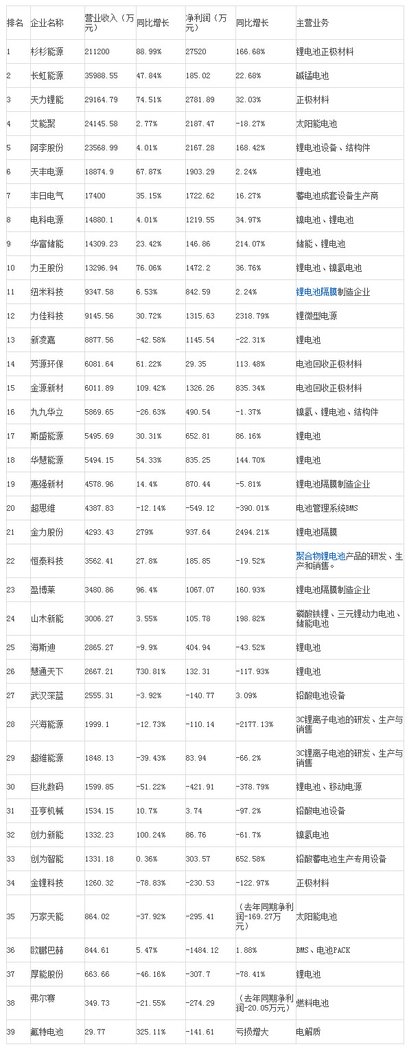 附:39家鋰電池企業(yè)營業(yè)收入排行榜。