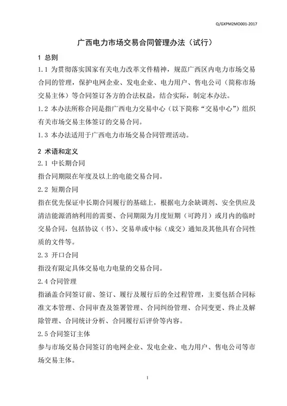 日前廣西電力交易中心發(fā)布了關(guān)于《廣西電力市場交易合同管理辦法(試行)》的通知。具體通知如下: