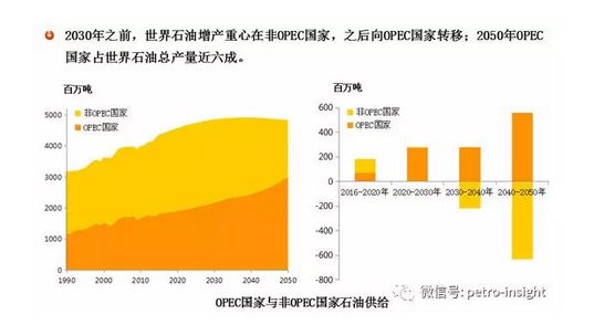 3.世界石油需求增速逐步放緩,2050年達到48.2億噸,需求增量全部來自非OECD國家;OPEC國家是展望后半期供應(yīng)增量的主要提供者。