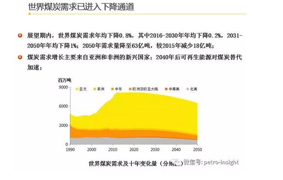 5.世界煤炭需求已進入下降通道,2050年較2015年減少22%。其中非OECD國家煤炭需求在2030年前后達峰。