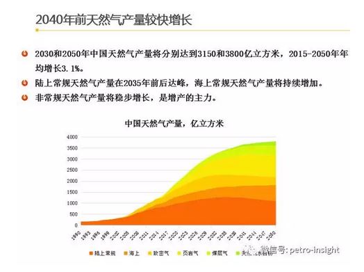 5.中國原油產(chǎn)量在2030年前維持在2億噸水平,之后逐步下滑。2040年前天然氣產(chǎn)量將較快增長,2050年產(chǎn)量在3800億立方米左右。