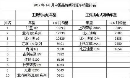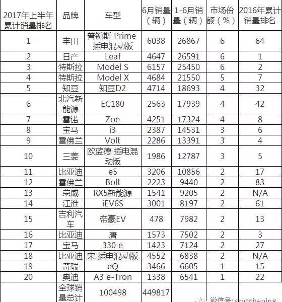 (2017年上半年全球新能源汽車銷量排行)