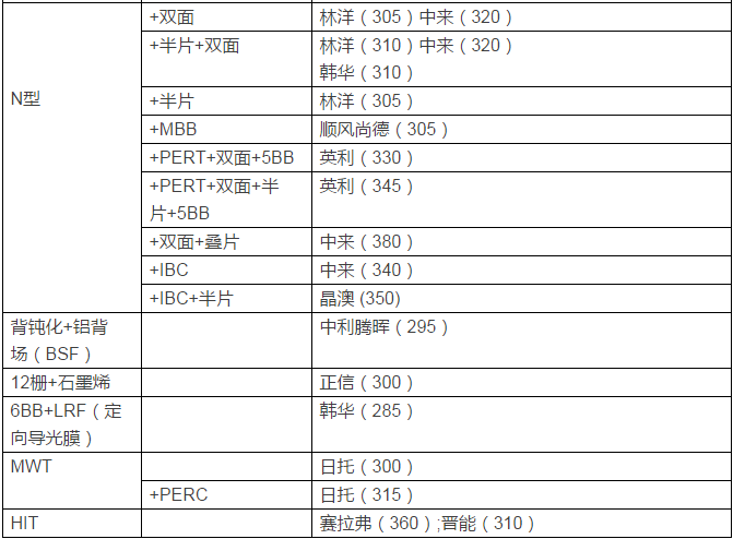 從上表看出,已經(jīng)占據(jù)主流的高效技術(shù)路線普通PERC技術(shù)難以在超級(jí)領(lǐng)跑者中施展手腳,只有少數(shù)幾家可以利用普通perc技術(shù)做出更高效的產(chǎn)品。在這個(gè)競(jìng)爭(zhēng)平臺(tái)中,N型PERC、IBC、HIT、雙面電池等將擁有強(qiáng)大的競(jìng)爭(zhēng)力。