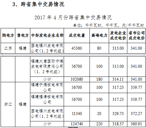 2017年4月份安徽發(fā)電權(quán)交易10000萬千瓦時。福建發(fā)電權(quán)交易144212萬千瓦時。