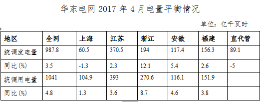 2017年4月華東電網(wǎng)無錯避峰電力。