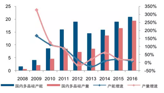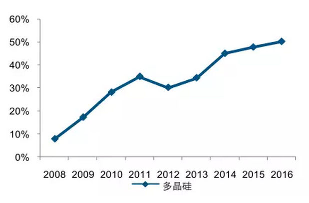 2016 年國(guó)產(chǎn)多晶硅產(chǎn)量在全球的比重也已超過(guò) 50%