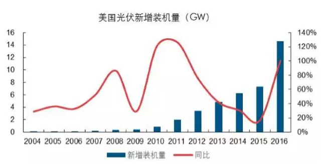 近年來(lái)美國(guó)光伏裝機(jī)規(guī)模持續(xù)擴(kuò)張