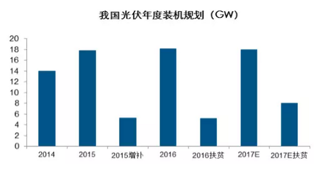 2016 年下發(fā)光伏扶貧規(guī)劃約 4.5GW,2017 年目標(biāo)預(yù)計(jì)在 8GW 左右