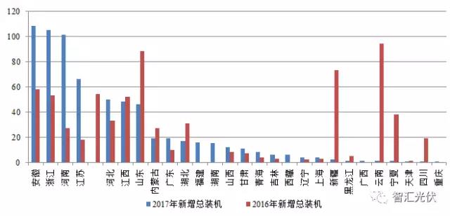 2016年、2017年新增裝機(jī)對(duì)比如下圖所示。