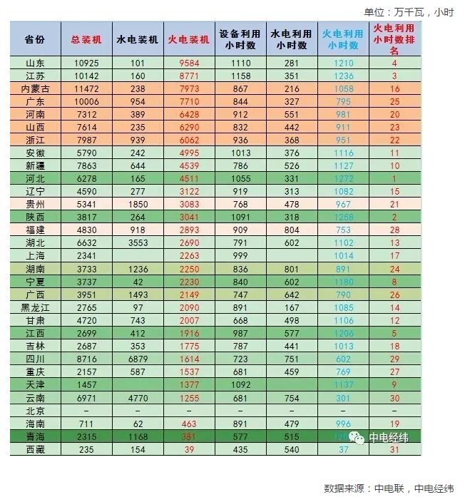 綜合各省火電裝機(jī)排名以及火電利用小時(shí)排名情況,作出以下判斷:
