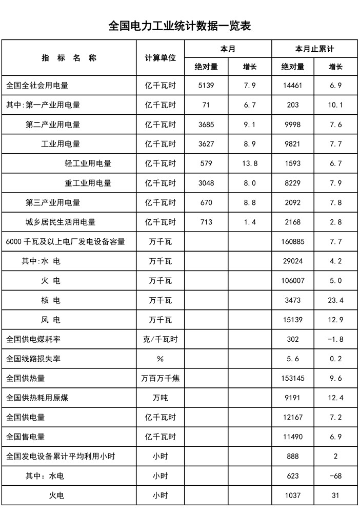 3月份,全社會用電量5139億千瓦時,同比增長7.9%。
