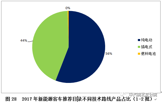 插電式混合動力(含增程式)補貼額度大幅減少,預計2017年,插電式混合動力客車的銷量還會進一步減少。燃料電池客車市場有待培育,短期發(fā)展仍然緩慢。這一點從2017年前兩批推薦目錄中,三種技術路線產品數量占比也得以印證。