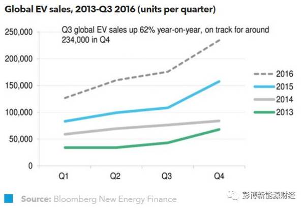 中國(guó)儲(chǔ)能網(wǎng)訊:2016年第三季度全球電動(dòng)汽車銷量同比增長(zhǎng)62%,其中中國(guó)和北美市場(chǎng)的增長(zhǎng)最為顯著。憑借著純電動(dòng)車的熱賣,中國(guó)市場(chǎng)的環(huán)比增長(zhǎng)再次領(lǐng)先。北美同比增長(zhǎng)則為62%,縮短了與歐洲的距離。我們認(rèn)為到2016年底,電動(dòng)車年度銷售量將達(dá)到70萬(wàn)臺(tái)左右,交出一份出色的答卷。鋰離子電池的需求量快速上升,2016年第三季度的數(shù)字顯示,同比增長(zhǎng)為105%。