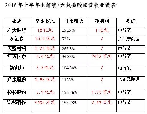 電解液在2015年的產(chǎn)值為31.5億元,在2016年產(chǎn)值為31.6億元,同比增長180%,2016年全年預(yù)計59.9億元。