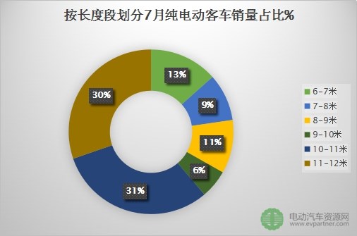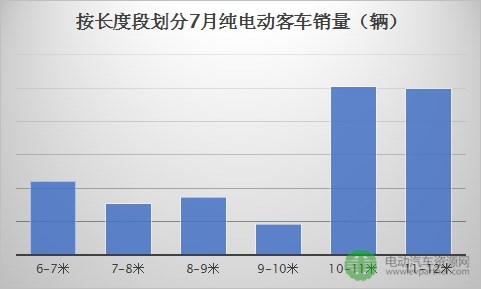 按長(zhǎng)度劃分7月純電動(dòng)客車(chē)銷(xiāo)售情況 10-12米更受青睞