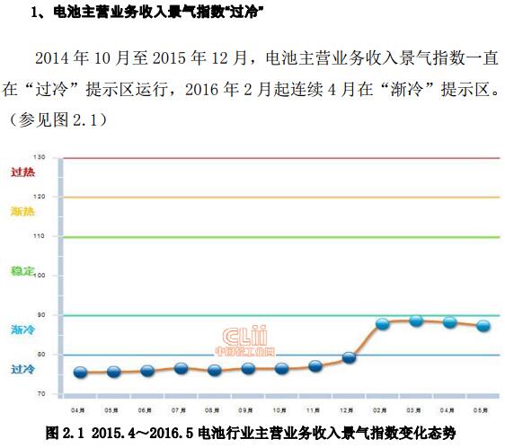 中國(guó)儲(chǔ)能網(wǎng)訊:2014年10月至2015年12月,電池主營(yíng)業(yè)務(wù)收入景氣指數(shù)一直在“過冷”提示區(qū)運(yùn)行,2016年2月起連續(xù)4月在“漸冷”提示區(qū)。從子行業(yè)看,鋰離子電池制造業(yè)增速較快。鋰離子電池制造完成累計(jì)主營(yíng)業(yè)務(wù)收入903.64億元,同比增長(zhǎng)29.77%;其他電池制造完成累計(jì)主營(yíng)業(yè)務(wù)收入771.96億元,同比增長(zhǎng)3.69%。