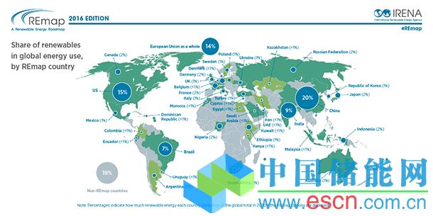 當(dāng)?shù)貢r(shí)間3月17日,國(guó)際可再生能源機(jī)構(gòu)IRENA發(fā)布可再生能源路徑圖2016版(REmap: Roadmap for a Renewable Energy Future)并建議將2030年可再生能源占比18%的目標(biāo)提高1倍至36%。