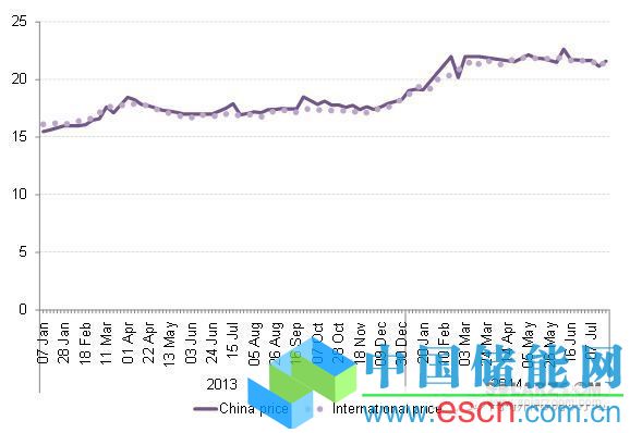 中國在今年4月底對產(chǎn)自歐盟的多晶硅也公布了高額反傾銷及反補(bǔ)貼稅率,但歐洲唯一一家大型多晶硅產(chǎn)商瓦克(Wacker)與中國政府達(dá)成了一個協(xié)議。該協(xié)議規(guī)定,只要瓦克出口到中國的多晶硅的價格不低于一個規(guī)定數(shù)值,就可以免收懲罰性關(guān)稅。雖然這一最低價格并未被官方公布,但BNEF預(yù)期其在23美元/公斤左右。2014上半年多晶硅價格穩(wěn)定在21-22美元/公斤,BNEF預(yù)期下半年隨著下游市場的上揚(yáng),多晶硅平均價格會升到23美元/公斤以上。所以對瓦克的最低價格限定并不能有效限制其在中國的出口。