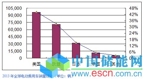 2013年全球電動汽車銷量22.55萬輛,純電動占57.34%